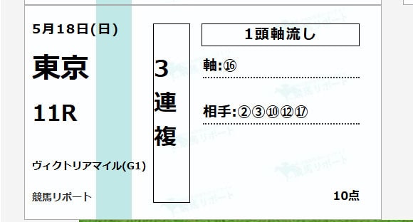そんな中、競馬リポート内で公開している「管理人田中自腹購入の予想サイト有料情報公開」のヴィクトリアマイルの予想が的中していました!