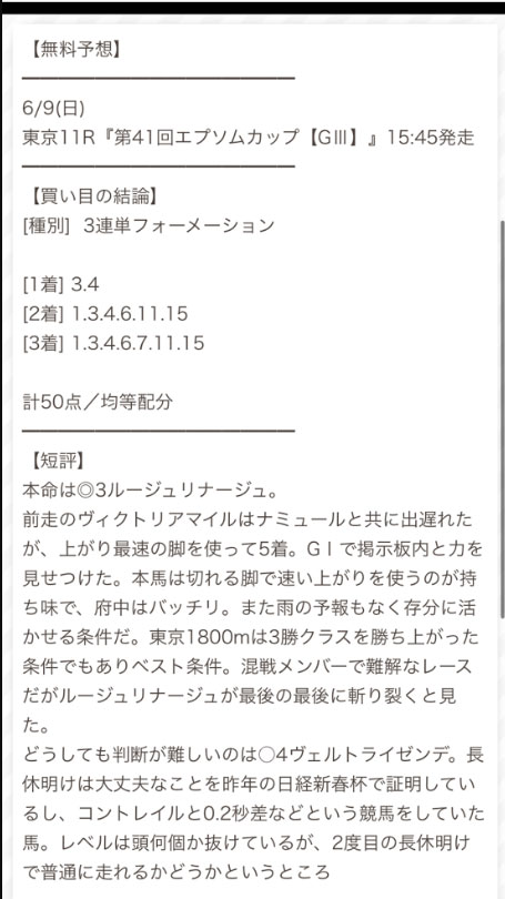 まずは土曜日に公開された買い目から見ていきたいと思います。