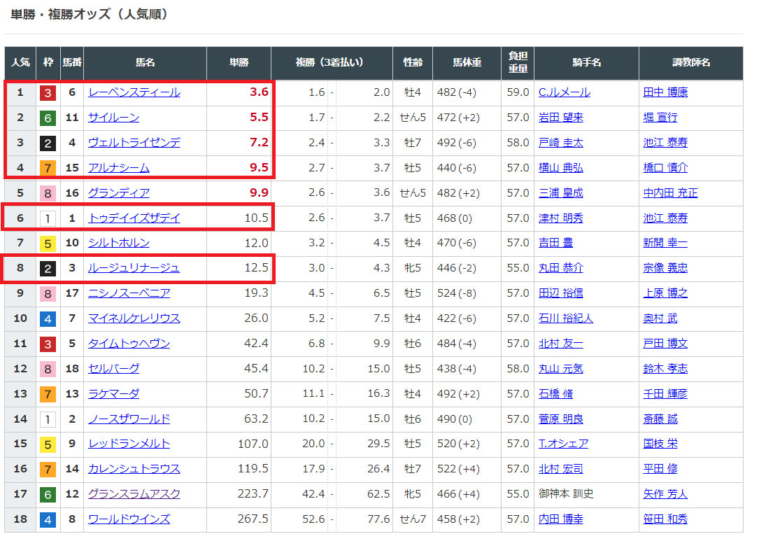 そして気を取り直して日曜日に公開されていた買い目も見ていきましょう。