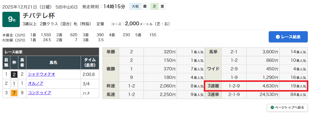 買い目点数は12点、1点3千円の圧張りで払い戻し金額「13万8900円」もの大金を獲得!