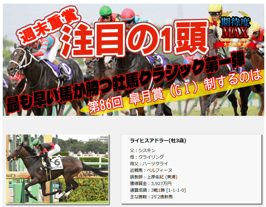 注目の1頭記事ではライヒスアドラーを推し、そのライヒスアドラーが3着。