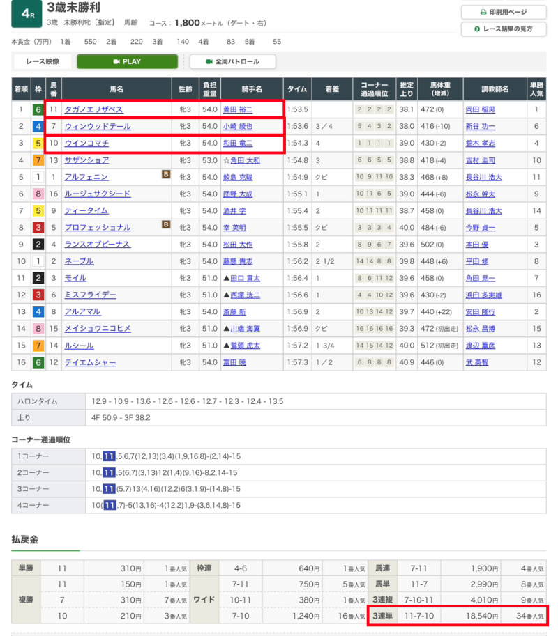 阪神4R:166,860円の獲得で562,020円を獲得し、