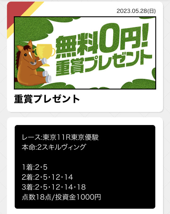 日本ダービー開催日の5月28日(日)の無料情報を2レース検証したので早速公開された買い目をチェック!