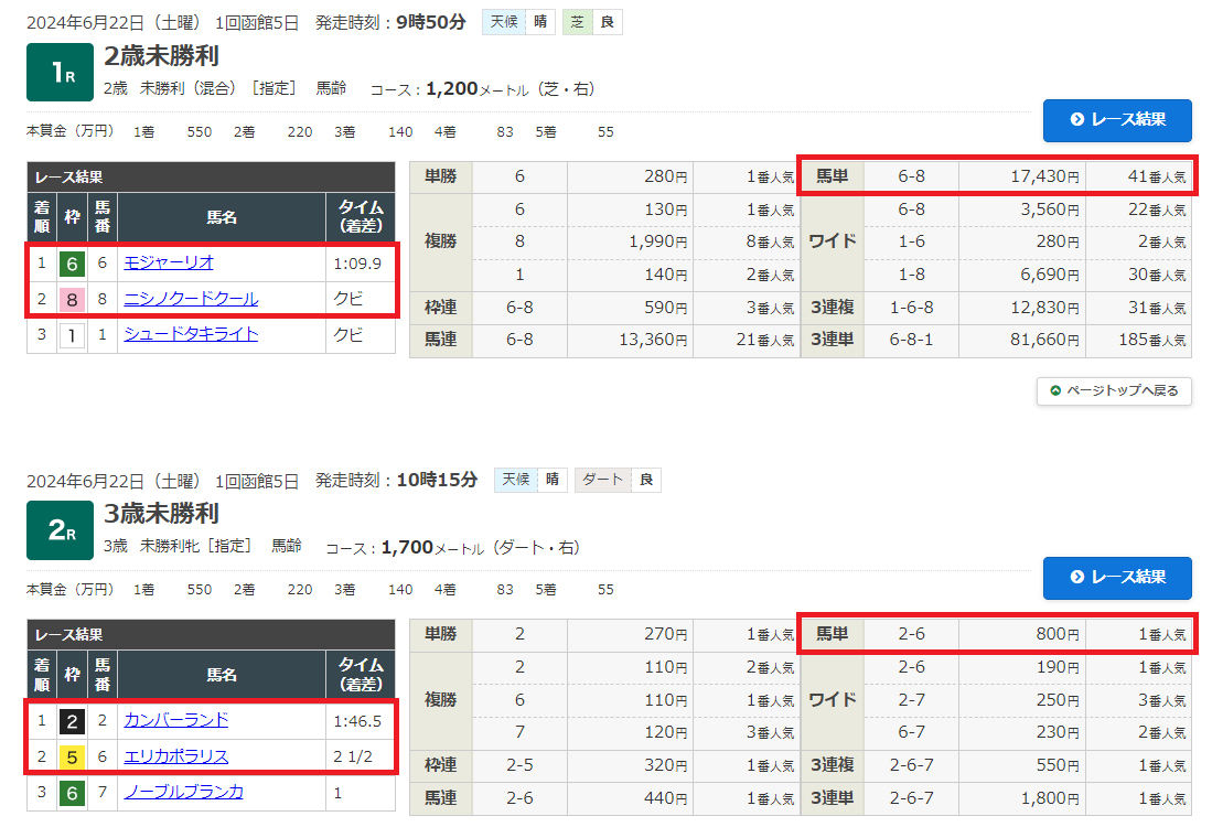 函館競馬場1,2Rの予想になります。
