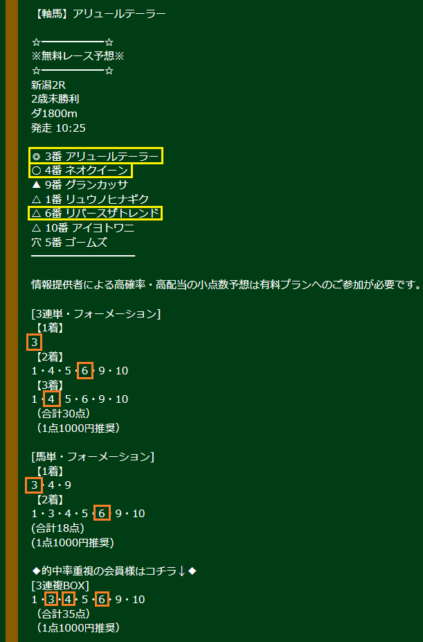 【無料情報】3連単的中!