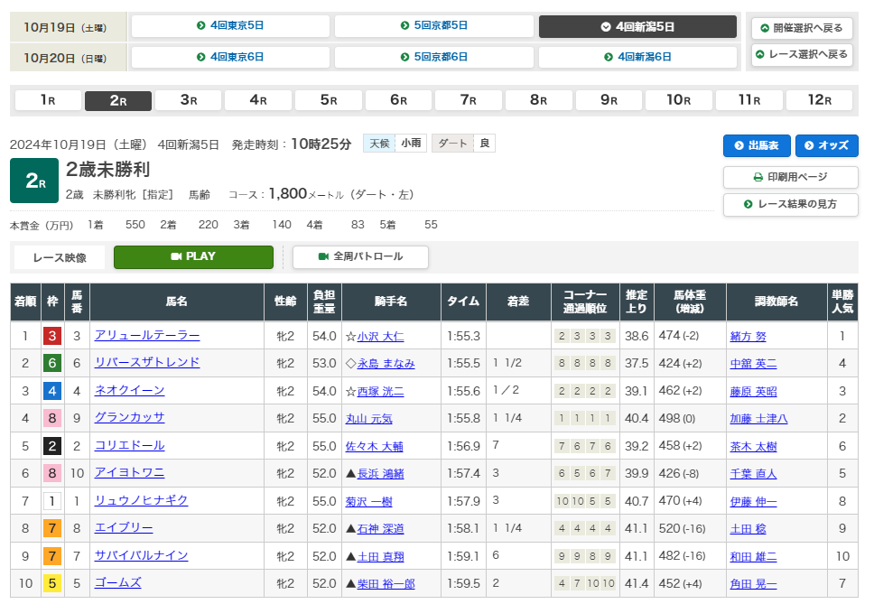 10月20日・東京4レース 2歳新馬 ダート1400m