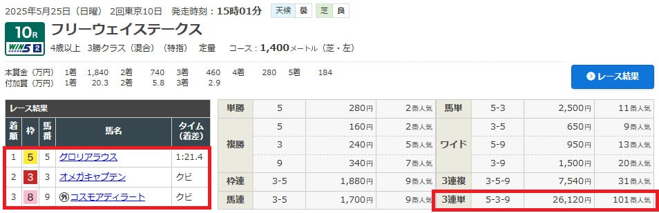 土曜日の平安ステークスの無料予想が的中していたようです。