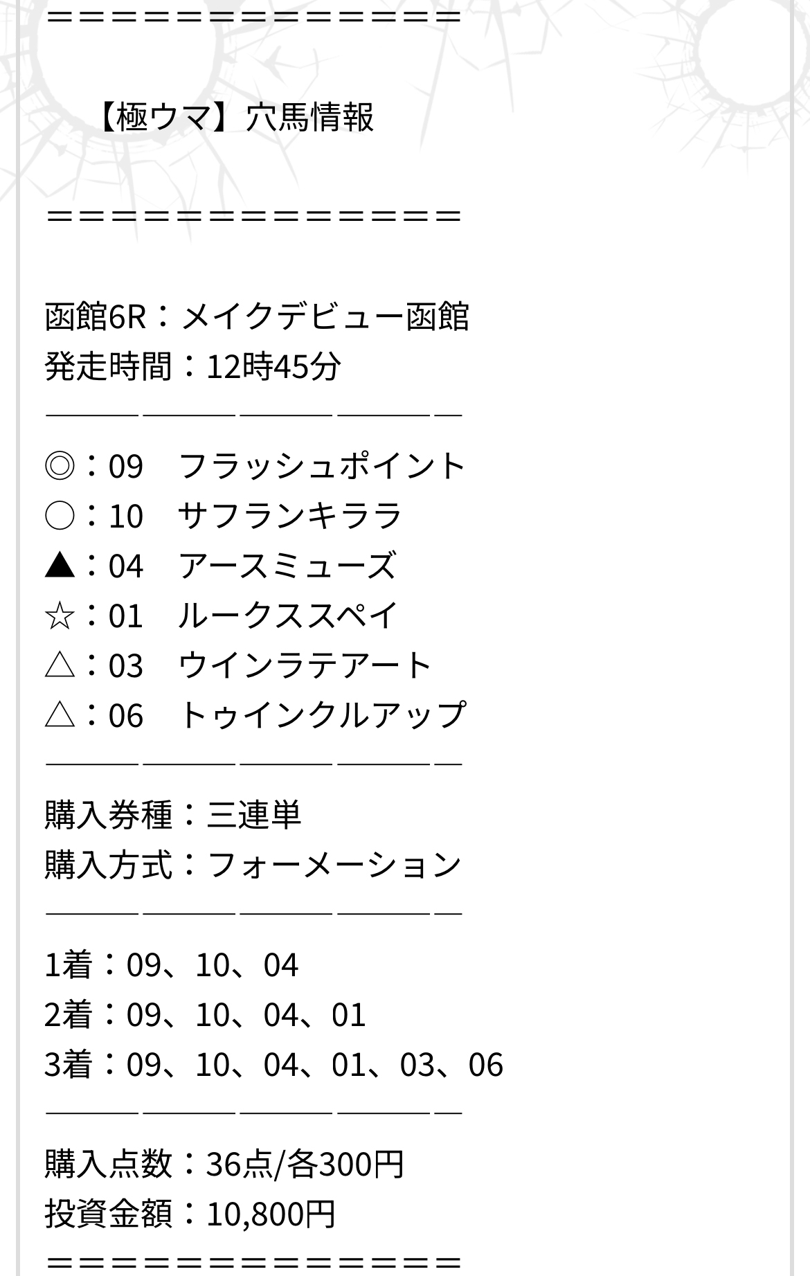そして気になる日曜日の3つ目に公開された買い目を見ていきましょう。