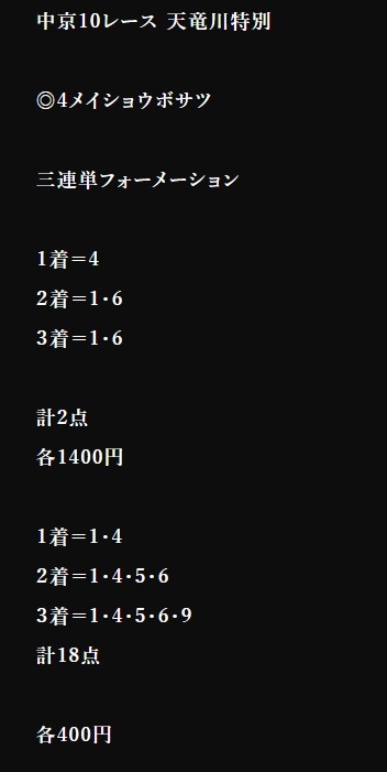 3連単3千円決着だったけどはずれました。 だめですね~裏馬券倶楽部は・・・