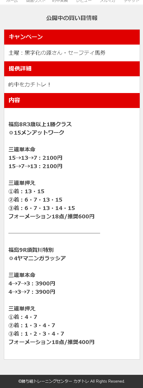 2レースとも本命がどんぴしゃで凄いと思った。良いサイトじゃないと得られない情報だと思う。