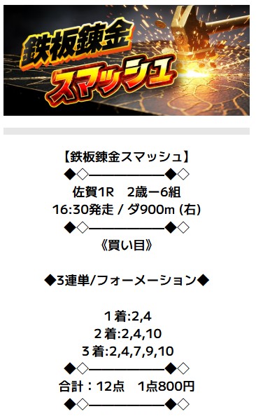 ニジュウマルの無料予想&有料予想ダブルで的中貰えました! 無料情報だが、何故7番人気と11番人気を拾ってるのにそれ以上に人気の2番人気外した?! まぁ、ここの無料予想は5点BOXが多いからその関係でだと思うけど、普通逆なんだけどな、某予想サイトは人気拾えるけど穴馬拾えないっていう。 その点、ニジュウマルは俺の中で及第点以上! 無料予想→5万1400円的中 有料予想→32万3400円的中 押さえで無料予想も参加してたから収支が有料情報に加算されてプラスになりました!