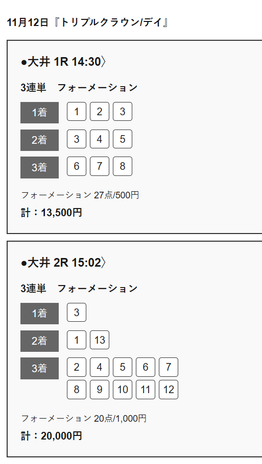 2レース合計買い目点数3連単5点で連続的中とか以上の精度すぎる件!