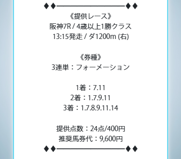 無料予想でこの精度は凄いです、1番人気から3番人気までの上位人気が全頭馬券外で配当妙味。